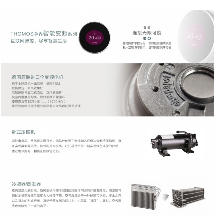 THOMOS獨立新風系統(tǒng),置換式優(yōu)化室內(nèi)外空氣循環(huán),充分滿足室內(nèi)換氣率,靈活控制各個風口風量,是空氣凈化技術(shù)的應用專家。