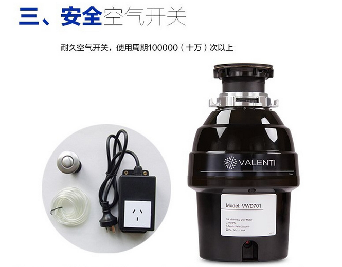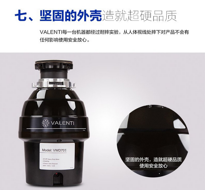 意大利VALENTI 家用廚房食物垃圾處理器處理機(jī)粉碎機(jī)重載型VWD701